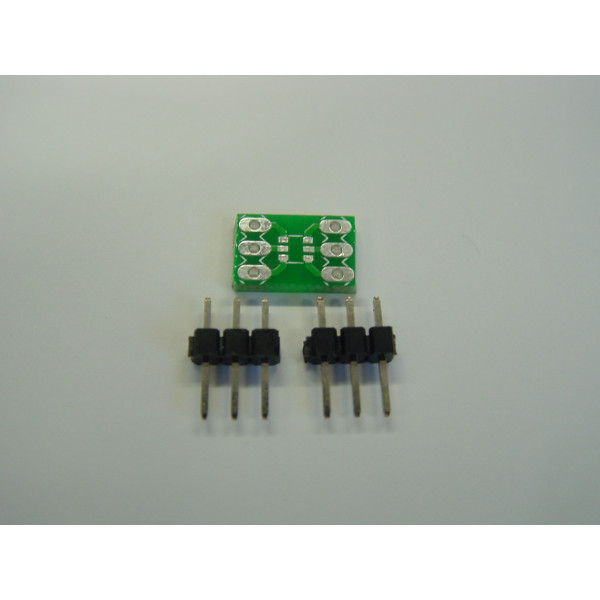 A simple board that breaks out the pins of a SOT23-6 device to a standard 0,1" grid, for easy breadboarding.