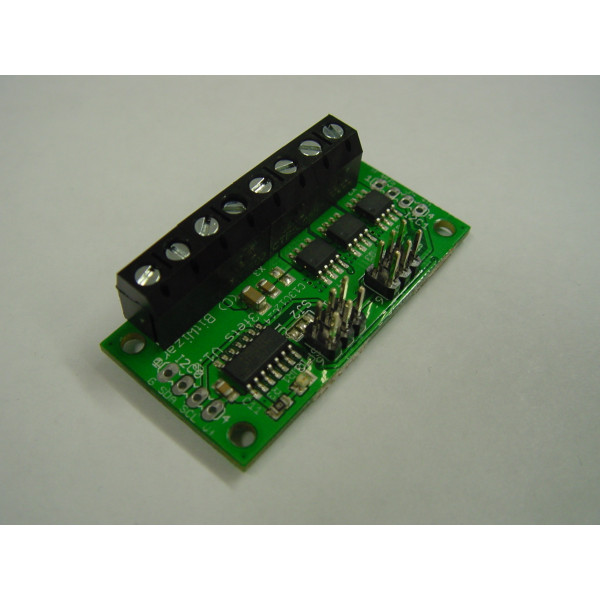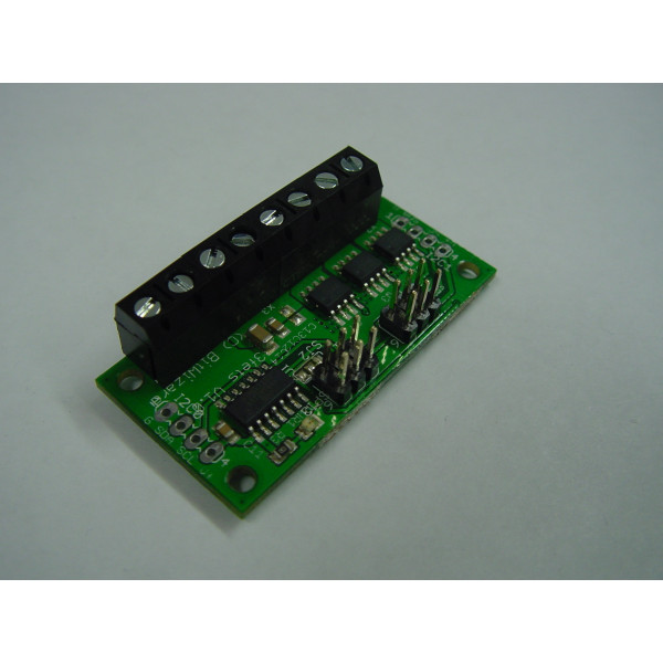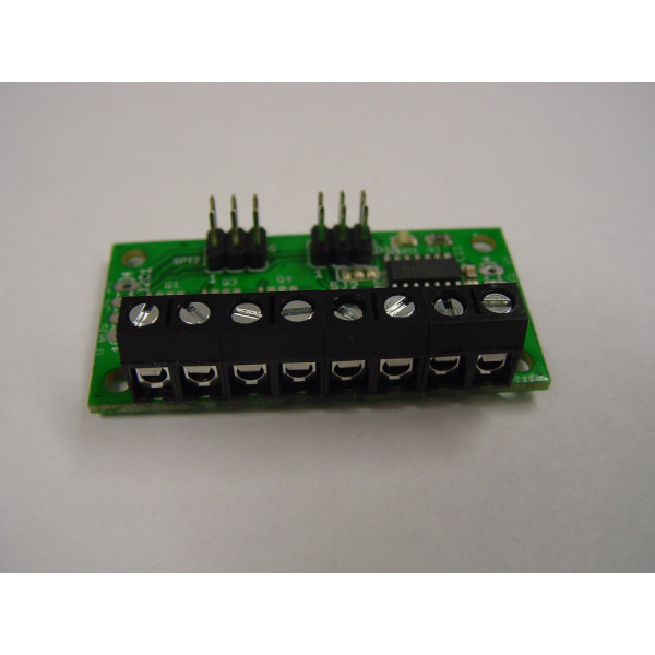 The board is equipped with 8 screw connectors, 3 for the outputs, 3 for V+ and 2 for GND.