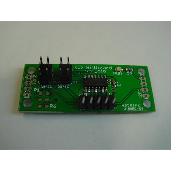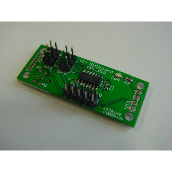 This board enables you to read and write upto 7 digital IO lines over an I2C or SPI bus. 5 Of the inputs are also capable of reading analog voltages (from software version 1.2 and up).