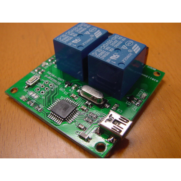 This board is equipped with two indepentdantly controllable relay's with one make-and-brake contact each, which are controllable over an USB interface.