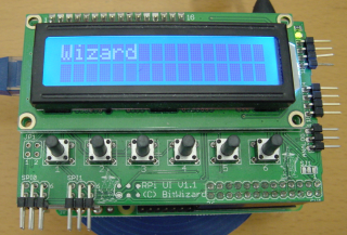 Revision as of 11:07, 11 September 2015 by Cartridge1987 (talk | contribs) (The RPi_UI board(Raspberry pi interface )buttons were in this image used to type: 'Wizard' button 1 = W Button 2 = i Button 3 = z button 4 = a button 5 = r button 6 = d)